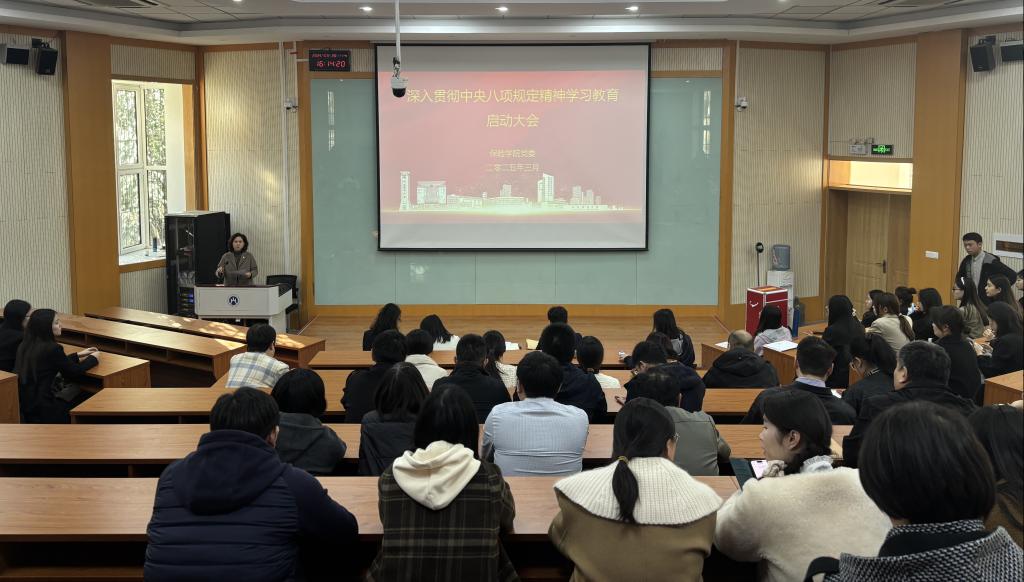 为深入贯彻中央八项规定精神,3月20日下午,金沙App 党委在舜耕校区第二阶梯教室启动部署深入贯彻中央八项规定精神学习教育。大会由金沙App 党委书记张娟主持,金沙App 全体党员参加。