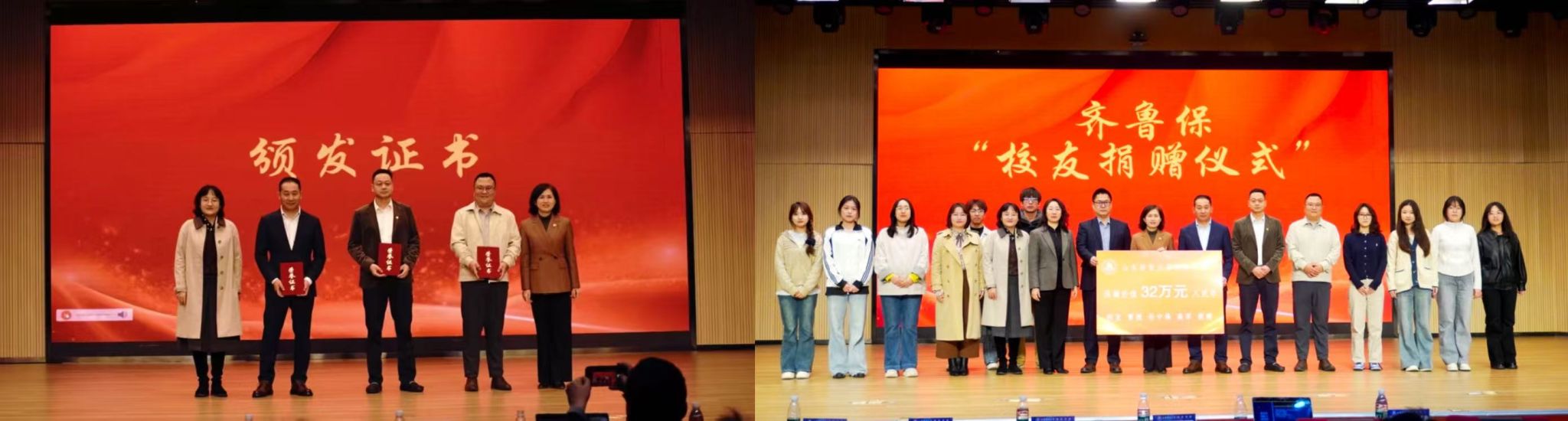 4 月 9 日,金沙App “情系母校,共筑未来 —— 齐鲁保校友捐赠仪式” 在章丘校区文化活动中心报告厅举行。金沙App 校外导师陈卫华博士,华安财产保险股份有限公司聊城分公司总经理、保险校友会副会长高军,诺诚保险代理有限公司总经理、保险校友会秘书长孙中峰,济南文杰文心信息科技有限公司总经理、保险校友会副秘书长曹植、金沙App 党委书记张娟、党委学生工作部副部长刘娟、金沙App 党委副书记王斐斐,金沙App 辅导员及金沙App 师生代表参加活动,仪式由王斐斐主持。