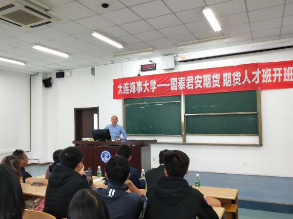 苑君先生向同学们介绍了期货市场的发展现状以及人才培养的具体计划,苑君先生表示期货市场仍处于初期发展阶段,拥有较大的发展潜力,期货从业人员数量相对银行、证券、基金较少,随着市场结构的转变自己国家战略的扶持,行业的发展与人才供给的矛盾日益明显,国泰君安期货有限公司关注人才中的各个环节,为同学们提供严密程度高,实战性强的培训。苑君先生的讲话充分体现了公司领导对此次开设人才班的关心与重视,更展现了对各位同学寄予的厚望。